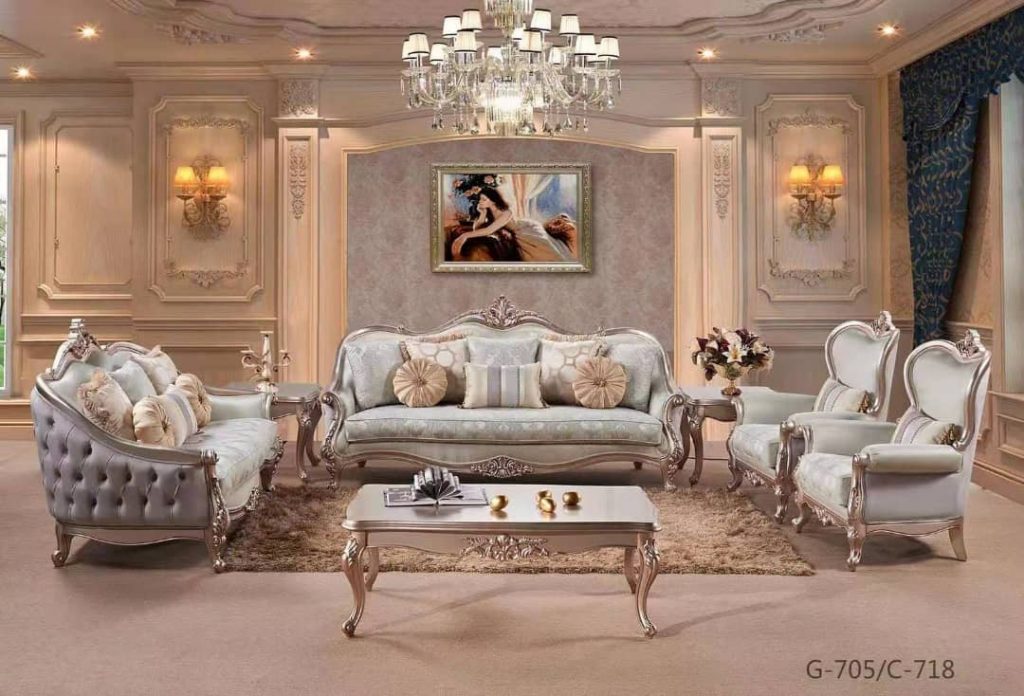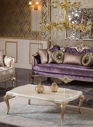 The perfect piece to reflect the royal tastes, this royal living room set anchors seating ensemble in timeless appeal. Clean-lined silhouette with tight arms and carved feet. Carving brings out this sofa’s glamorous side, while exquisite details including high-density foam.